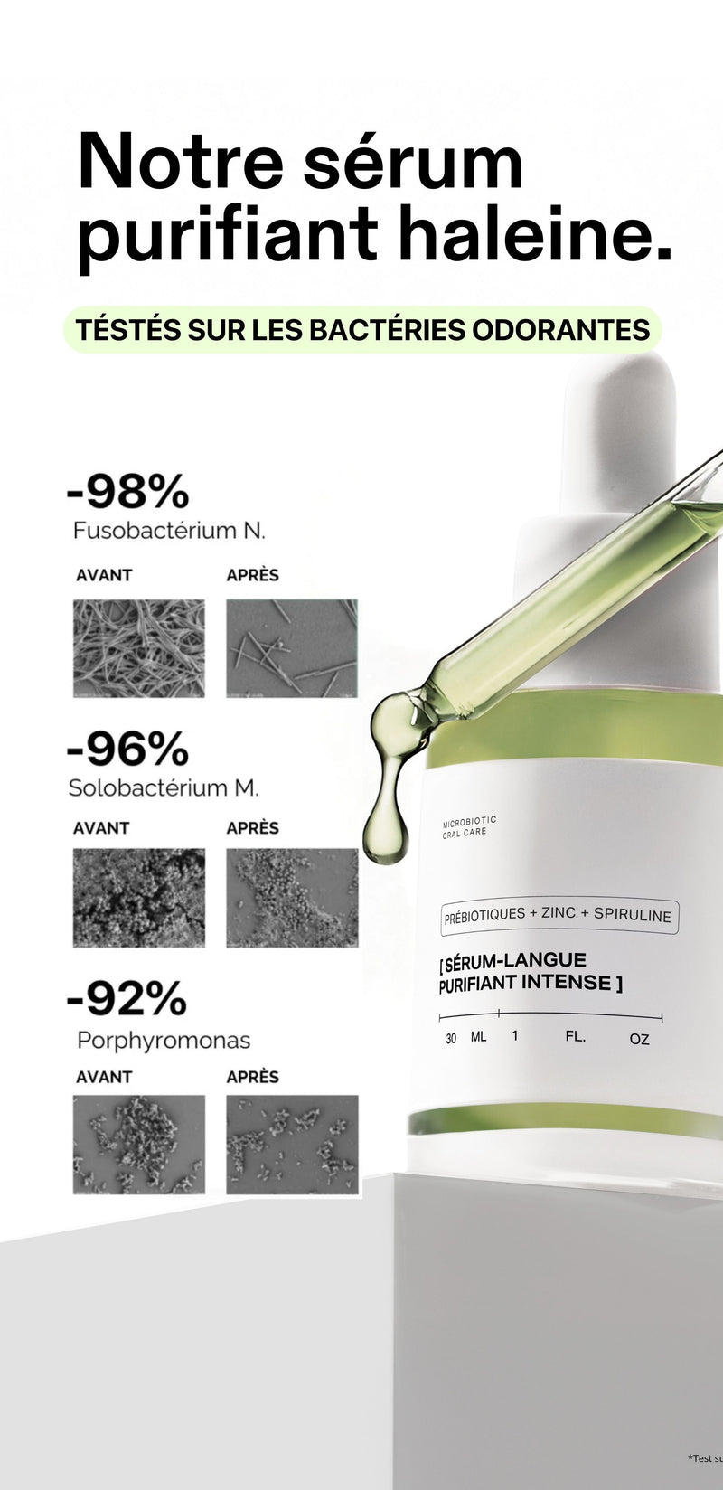 « Pour retrouver une haleine fraîche sans compromis sur la santé bucco-dentaire, j'ai conçu ces kits sans alcool ni ingrédients agressifs. Ils agissent en douceur en rééquilibrant le microbiote buccal et en soutenant les bonnes bactéries.»