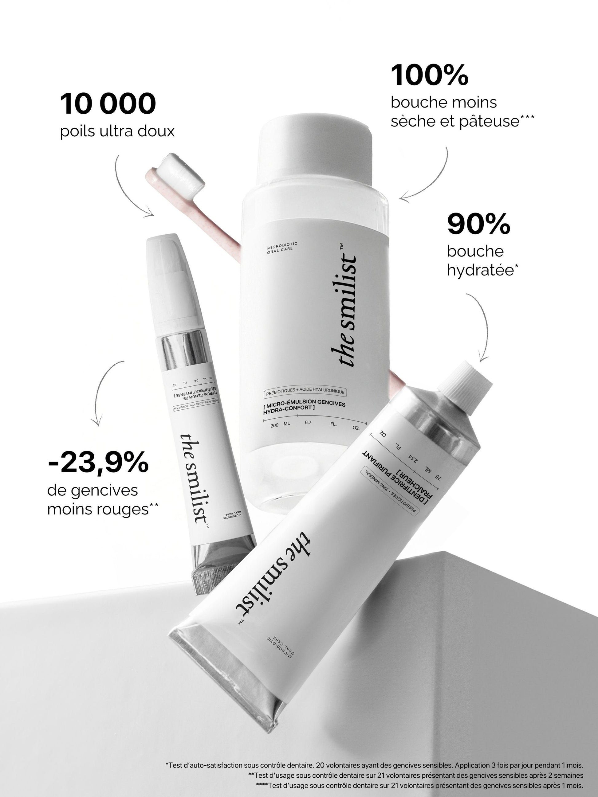 * Test instrumental sous contrôle dentaire sur 19 volontaires présentant des gencives sensibles.