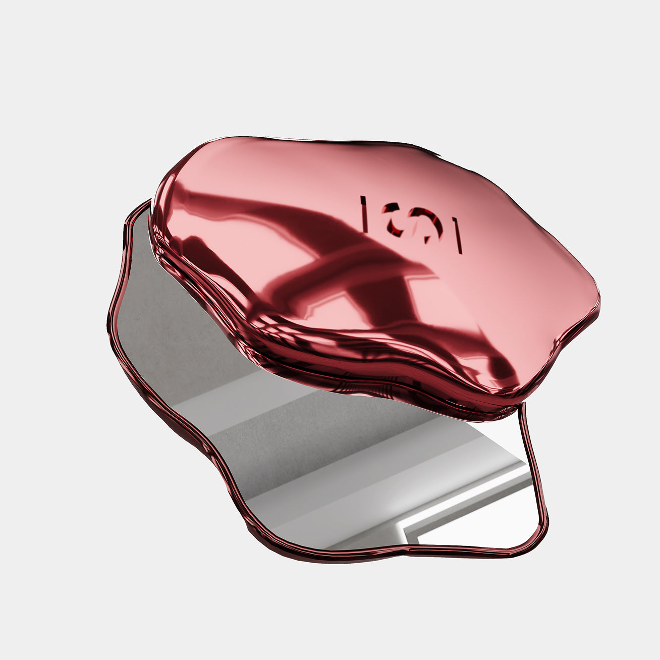 Miroir métallique, sculptural et ultra-plat, conçu pour des retouches